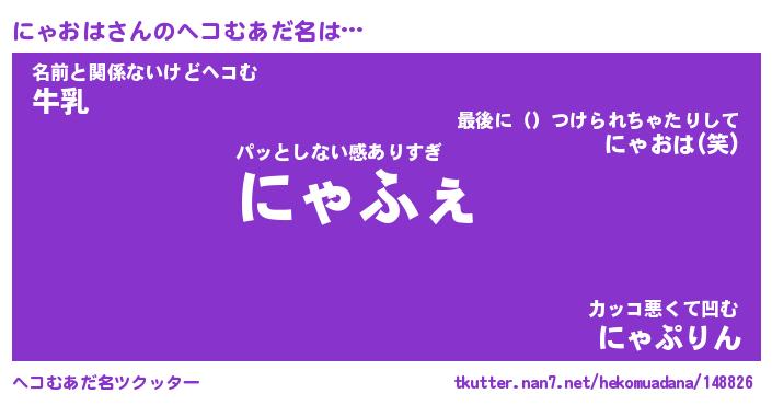 | 2回繰り返すあだ名 | 『にゃにゃ』『ににゃゃ』『ねばねば』 |