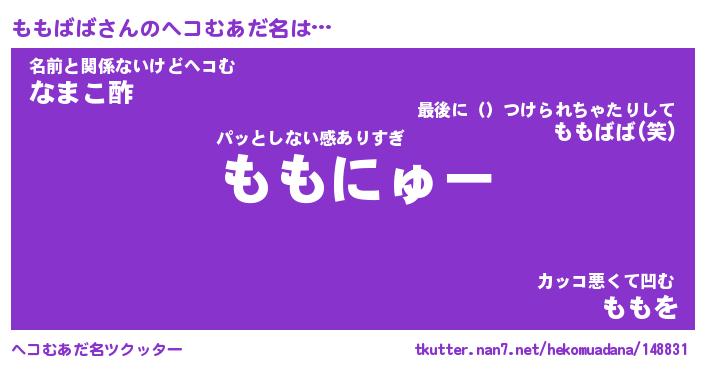 | 意味不明あだ名 | 『ペロリンももばば』『永久保存ももばば』 |