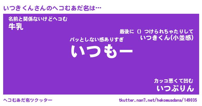 | ヒーロー風カッコイイあだ名 | 『スーパーイツキクン』『暗黒騎士イツ』 |
