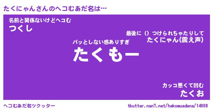 | ファンタジー風あだ名 | 『タクフェル』『エターナルタクニャンー』 |