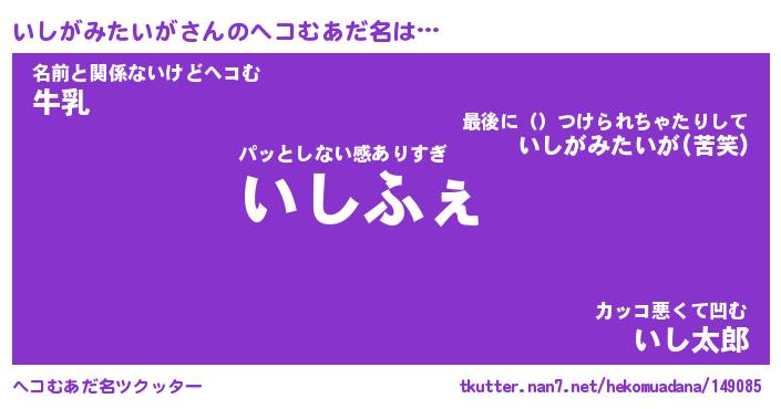 | 欧米人風あだ名 | 『マイケルいしがみたいが』 |