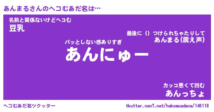 | ポケモン風あだ名 | 『アンチュウ』『アンマダネ』 |