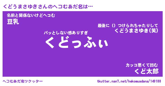 | 恥ずかしいあだ名 | 『プリティーくどうまさゆき』『くどちん』 |