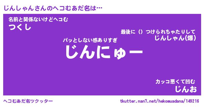 | 男性向けラノベタイトル風あだ名 | 『じんしゃんの憂鬱』 |