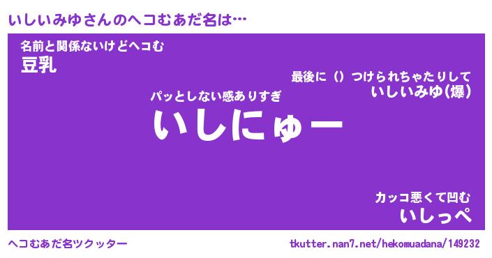 | ファンタジー風あだ名 | 『イシフェル』『エターナルイシイミユー』 |