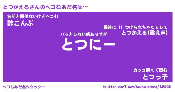 | 男性向けラノベタイトル風あだ名 | 『とつかえるの憂鬱』 |