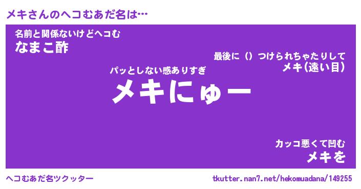 | ポケモン風あだ名 | 『メキチュウ』『メキダネ』『ヒメキ』 |