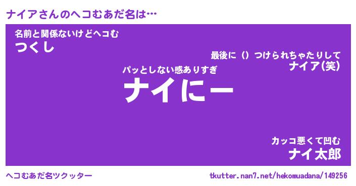 | 意味不明あだ名 | 『ペロリンナイア』『ナイアフォーエバー』 |