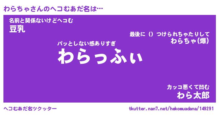 | ファンタジー風あだ名 | 『ワラフェル』『エターナルワラチャー』 |