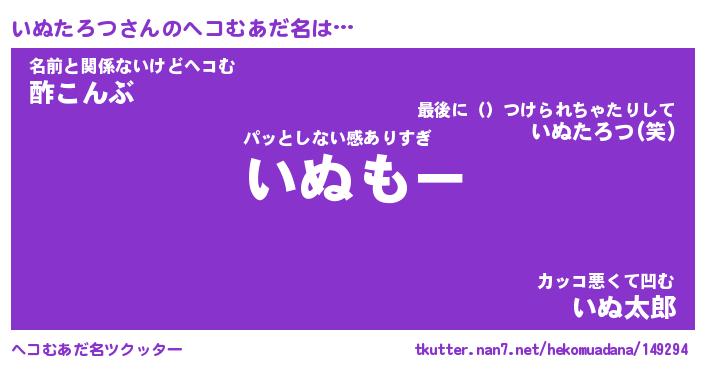 | ファンタジー風あだ名 | 『イヌフェル』『エターナルイヌタロツー』 |