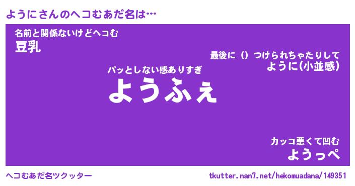 | ポケモン風あだ名 | 『ヨウチュウ』『ヨウニダネ』 |