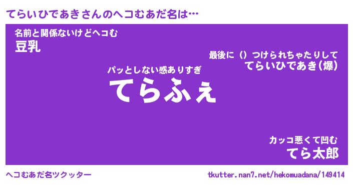 | 意味不明あだ名 | 『ペロリンてらいひであき』 |