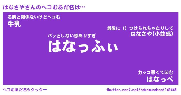 | 意味不明あだ名 | 『ペロリンはなさや』『永久保存はなさや』 |