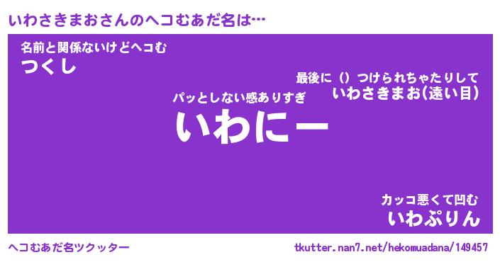 | 恥ずかしいあだ名 | 『プリティーいわさきまお』『いわっちょ』 |