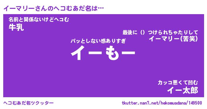 | ヒーロー風カッコイイあだ名 | 『スーパーイーマリー』『炎刃騎士イー』 |