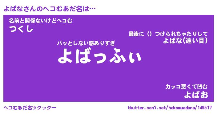 | 意味不明あだ名 | 『ペロリンよばな』『よばなフォーエバー』 |