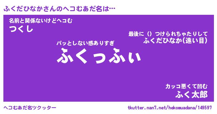 | ヒーロー風カッコイイあだ名 | 『スーパーフクダヒナカ』『炎刃騎士フク』 |