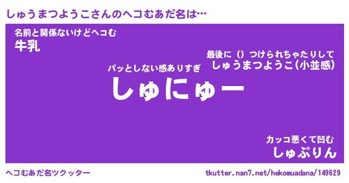 | 2回繰り返すあだ名 | 『しゅしゅ』『ししゅゅ』『うねうね』 |