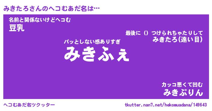 | ファンタジー風あだ名 | 『ミキフェル』『エターナルミキタロー』 |