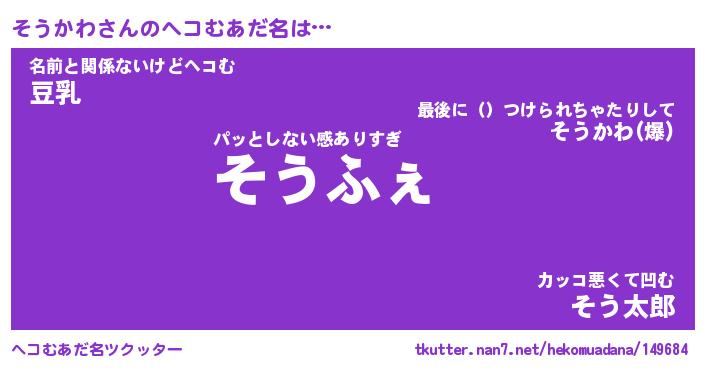 | ファンタジー風あだ名 | 『ソウフェル』『エターナルソウカワー』 |