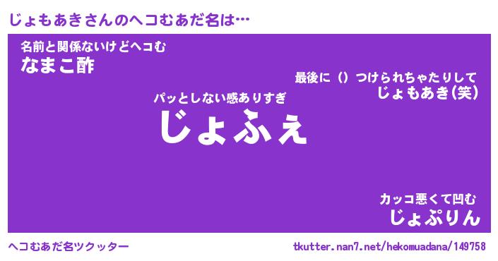 | 意味不明あだ名 | 『ペロリンじょもあき』 |