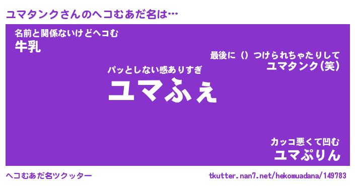 | ファンタジー風あだ名 | 『ユマフェル』『エターナルユマタンクー』 |