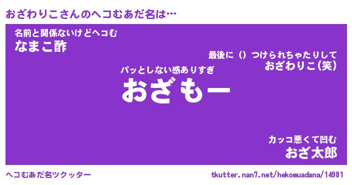 | ファンタジー風あだ名 | 『オザフェル』『エターナルオザワリコー』 |