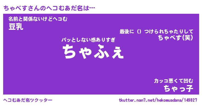 | 意味不明あだ名 | 『ペロリンちゃべす』『永久保存ちゃべす』 |