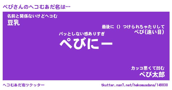 | ポケモン風あだ名 | 『ペビチュウ』『ペビダネ』『ヒペビ』 |