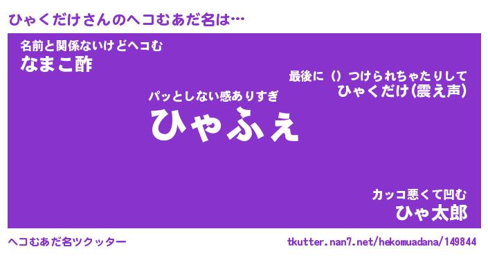 | ヒーロー風カッコイイあだ名 | 『スーパーヒャクダケ』『魔戒騎士ヒャ』 |