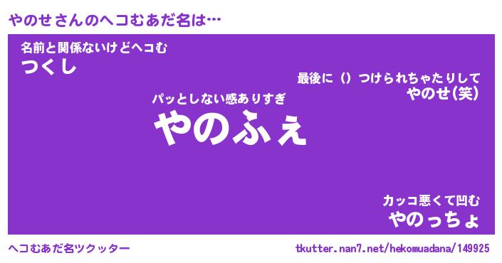 | 意味不明あだ名 | 『ペロリンやのせ』『やのせフォーエバー』 |