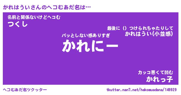 | 恥ずかしいあだ名 | 『プリティーかれはうい』『かれっちょ』 |