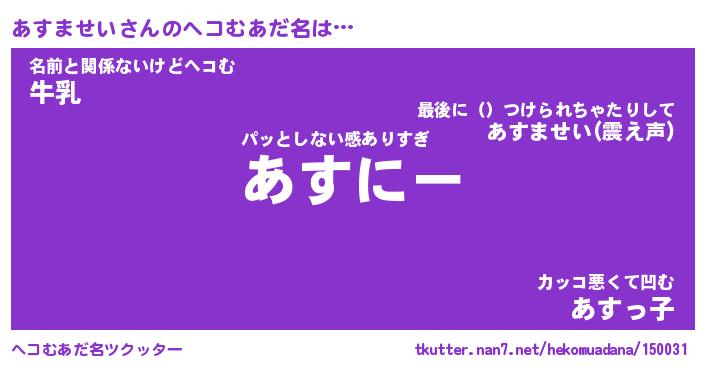 | 恥ずかしいあだ名 | 『プリティーあすませい』『あすっちょ』 |