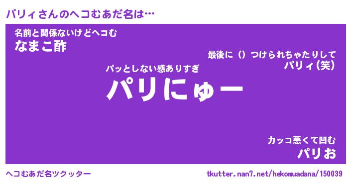 | ヒーロー風カッコイイあだ名 | 『スーパーパリィ』『ウルトラパリィマン』 |