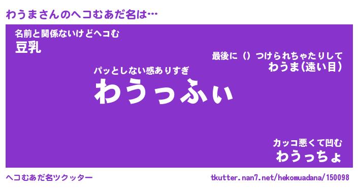 | ヒーロー風カッコイイあだ名 | 『スーパーワウマ』『ウルトラわうまマン』 |