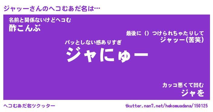 | 2回繰り返すあだ名 | 『ジャジャ』『ジジャャ』『くだくだ』 |