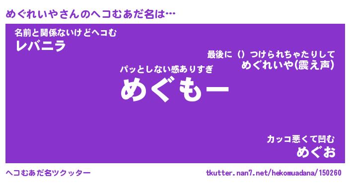 | 2回繰り返すあだ名 | 『めぐめぐ』『めめぐぐ』『おらおら』 |
