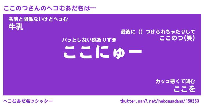| ポケモン風あだ名 | 『ココチュウ』『ココノダネ』 |