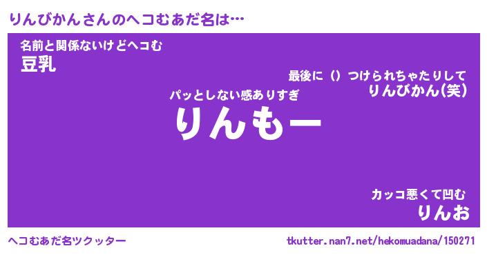 | 男性向けラノベタイトル風あだ名 | 『りんびかんの憂鬱』 |