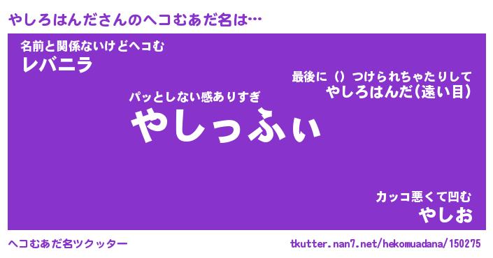 | 男性向けラノベタイトル風あだ名 | 『やしろはんだの憂鬱』 |