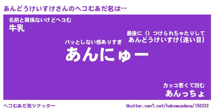 | 意味不明あだ名 | 『ペロリンあんどうけいすけ』 |