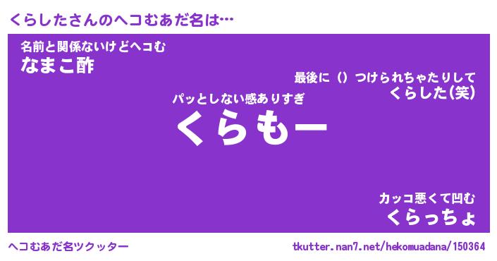 | 意味不明あだ名 | 『ペロリンくらした』『永久保存くらした』 |