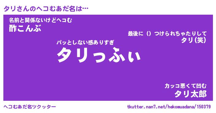 | ポケモン風あだ名 | 『タリチュウ』『タリダネ』『ヒタリ』 |