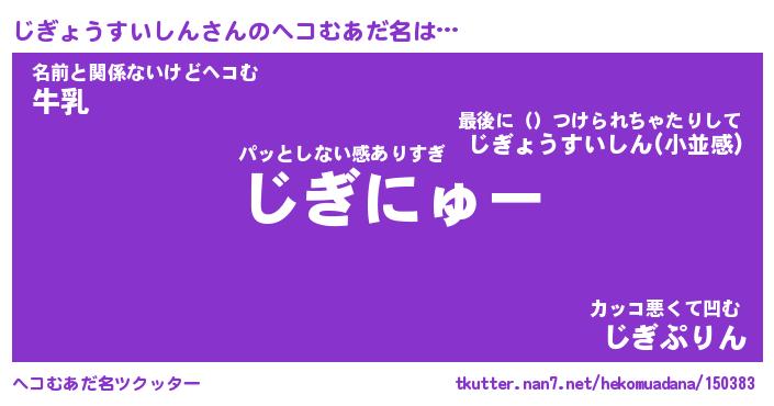 | 2回繰り返すあだ名 | 『じぎじぎ』『じじぎぎ』『ぬるぬる』 |