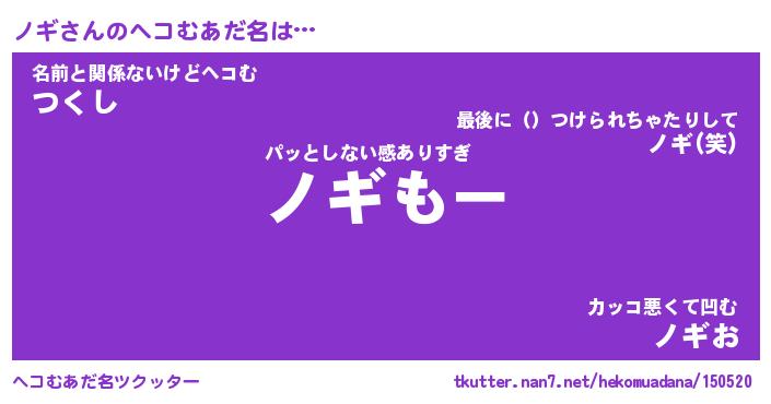 | 2回繰り返すあだ名 | 『ノギノギ』『ノノギギ』『ねちねち』 |