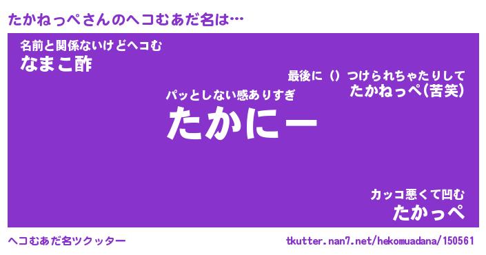 | 男性向けラノベタイトル風あだ名 | 『たかねっぺの憂鬱』 |