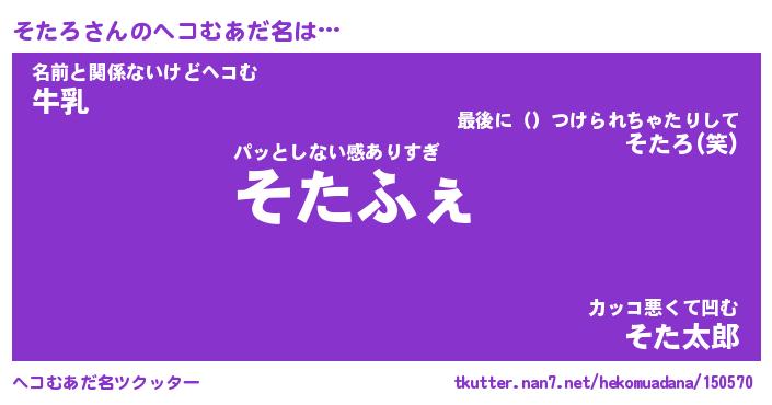 | 意味不明あだ名 | 『ペロリンそたろ』『そたろフォーエバー』 |