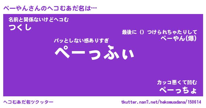 | 意味不明あだ名 | 『ペロリンぺーやん』『永久保存ぺーやん』 |