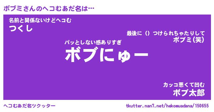| 意味不明あだ名 | 『ペロリンボブミ』『ボブミフォーエバー』 |