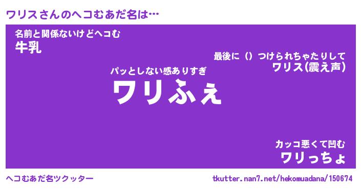 | ポケモン風あだ名 | 『ワリチュウ』『ワリスダネ』 |